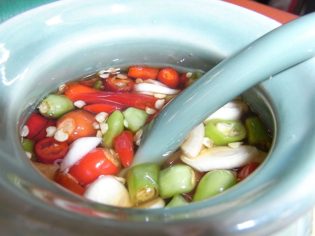 滞在中に気に入ったのが、このニンニクと唐辛子をつけ込んだ酢。うまい。なんにでもかけたい。簡単そうなので自分でもやってみるつもり。