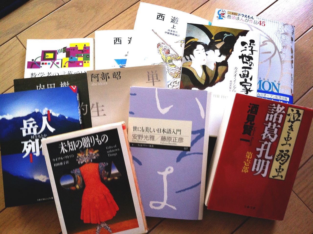 2012 9月 8 12:06:00 最近読んだ本(西遊記、浮世の画家、泣き虫弱虫諸葛孔明、ほか) カテゴリ: 買った本・読んだ本 その他の本 感想書くのが追いつかなくなってきたので、写真だけ上げることにしました。 ライアル・ワトソンの『未知の贈りもの』と、阿部昭の『単純な生活』と、岩波少年文庫の『西遊記』は再読。 『浮き世の画家』はカズオ・イシグロ作品では3冊目。やっとこの作家のスタイルが飲み込めて、ますます楽しくなってきたところ。次は『日の名残』を読みます。 タグ :#カズオ・イシグロ
